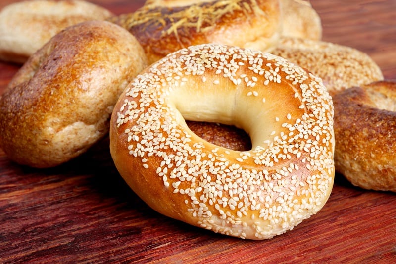 You can top your bagel with sesame seeds, chia seeds, or do a whole mix. If you want a savory finish, try an everything bagel, which traditionally has a mixture of different seeds, grains, and even lightly fried onion.